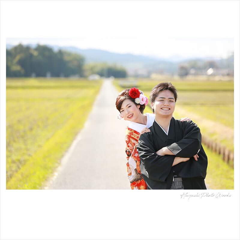 生まれ育った地元やご実家で、お二人が出会った場所など、縁とゆかりのある場所でご結婚の記念を前撮りで残すプランです。ご自宅でお支度をしてご家族皆さんで大切な写真を残して頂けます。